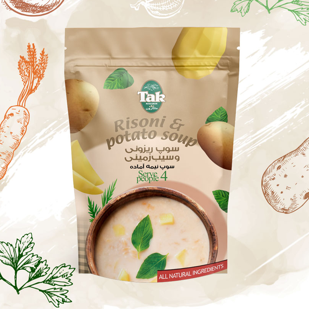 آرد سمولینا، پودر سیب زمینی، شیر خشک، سبزیجات (هویج، جعفری ،سیر، پیاز)، نمک، فلفل