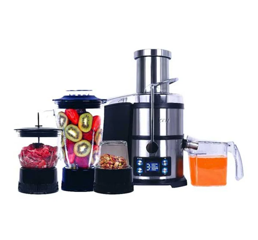 دارای پارچ ۱ لیتری / دهانه 75 میلی لیتری (اندازه یک سیب) / محفظه 2 لیتری تفاله / پارچ مخلوط کن یک و نیم لیتری / پارچ آبمیوه گیری 800 میلی لیتری