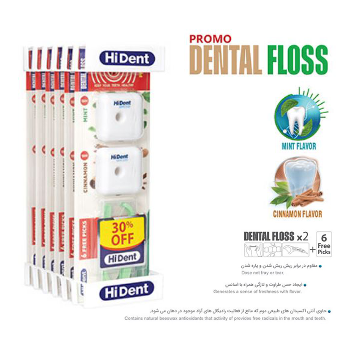 • مشخصات: نخ دندان 50 متری با اسانس (نعنا و دارچین) +6 نخ دندان کمانی به صورت رایگان