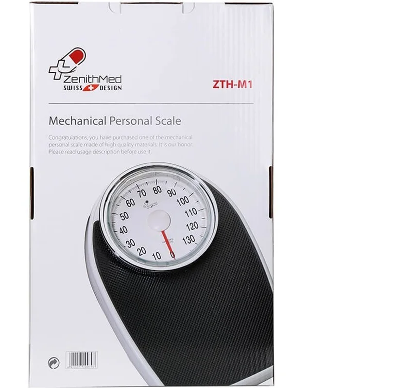 ترازو عقربه ای Zenithmed مدل ZTH-M1 مناسب استفاده در مطب پزشک و منازل میباشد. اعداد بزرگ این ترازو ، خوانایی را آسان میکند. ترازو زنیت مد با قابلیت اندازه گیری تا وزن 136 کیلوگرم دارای دقت اندازه گیری 0.5 کیلوگرم میباشد. صفحه نمایش ترازوی عقربه ای زنیت مد مدل M1 بزرگ است که همین امر سبب می شود اعداد و نوشته های صفحه نمایش واضح و خوانا خوانده شود.دقت اندازه گیری این مدل ترازو بالا می باشد و ممکن است حدود 500 گرم کمتر یا بیشتر نشان دهد که برای یک ترازوی عقربه ای معقول است.عملکرد و روند کار ترازوی عقربه ای زنیت مد مکانیکی طور است و از مقاومت و دوام بالایی برخوردار می باشد.استفاده از ترازوی عقربه ای آسان است به این صورت که دکمه استارت را می زنیم تا دستگاه روشن شود و سپس روی ترازو قرار می گیریم تا وزن را اندازه گیری کند.محل قرارگیری پا روی این ترازو به اندازه و معقول است، به طور کلی اندازه دستگاه و اندازه صفحه نمایش آن مناسب می باشد.