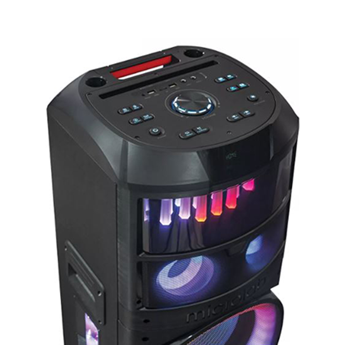 دارای اپلیکیشن هوشمند موبایل برای تنظیم نور ،صدا ، رادیو ، فلش،دمیکروفون/ 3 عدد ورودی AUX و کواکسیکال / بلوتوث / USB / کارائوکه / رادیو/ ریموت کنترل ال ای دی / میکروفن وایرلِس بانمایشگر دیجیتال بدنه ۱۶mm / مجهز به رقص نور سه بعدی