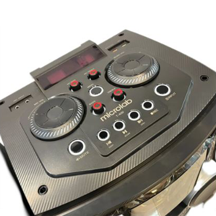 دارای اپلیکیشن هوشمند موبایل برای تنظیم )نور ،صدا ، رادیو ، فلش، میکروفون / کارائوکه /رادیو/ ریموت کنترل جوی استیک / ورودی اپتیکال / میکروفن وایرلِس بانمایشگر دیجیتال مجهز به رقص نور سه بعدی