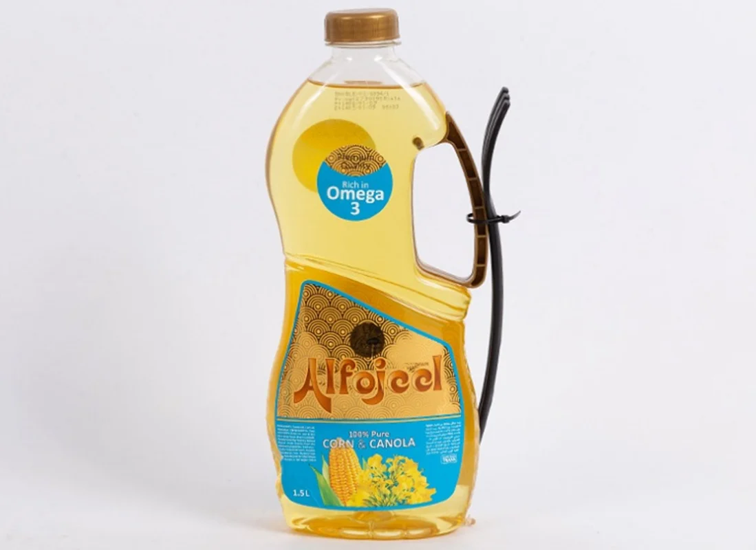 روغن مایع الفجیل Alfojeel از ترکیب روغن دانه های ذرت و کانولا (کلزا) حاوی امگا ۳ تهیه شده است و با حجم ۱.۵ لیتر که برای مصارف سالادها و پخت و پز انواع غذاها قابل استفاده است.