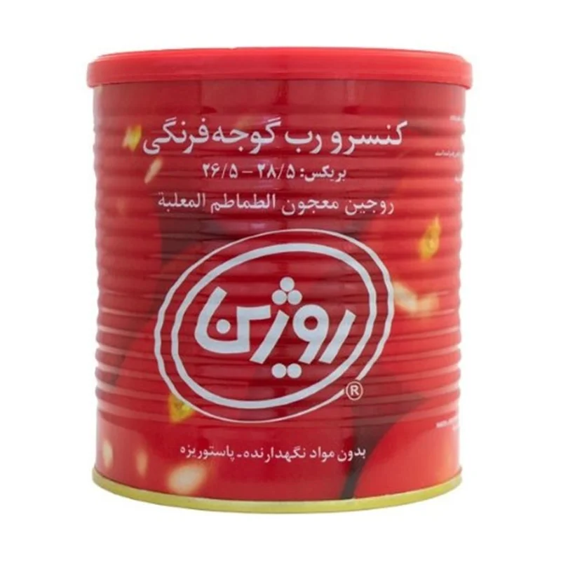 برند محبوب و دوست داشتنی روژین در زمینه ی تولید محصولات غذایی بسیار موفق عمل کرده است و محصولاتی با کیفیت را به مردم ارائه داده است. یکی از محصولات جذاب و با کیفیتی که تولید و به بازار عرضه کرده است رب گوجه ٨۰٠گرمی روژين می باشد. رب گوجه فرنگی محصولی است که با از بین بردن پوست گوجه و دانه های آن و همچنین غلیظ کردن آب گوجه به دست می آید و محصولی سرشار از مواد مغذی بوده، و علاوه بر این ترکیب های مفیدی که در رب گوجه وجود دارد به این مقدار بالا در گوجه فرنگی خام وجود ندارد. وقتی که از خاصیت های رب گوجه فرنگی مانند رب گوجه ٨۰٠گرم روژين صحبت می کنیم منظورمان تاثیرات مثبتی است که بر روی سلامتی انسان دارد. برای نمونه می توان گفت فقط یک قاشق غذاخوری رب گوجه فرنگی منبع بسیار بزرگی از آنتی اکسیدان بوده و می تواند ۳ تا ۶ درصد از مصرف روزانه به آهن، پتاسیم و ویتامینهای B را تامین کند. به طور کلی میتوان گفت نه تنها خواص درمانی رب گوجه فرنگی کمتر از خواص درمانی گوجه فرنگی نیست، بلکه حتی در پارهای از موارد بیشتر هم میباشد.
