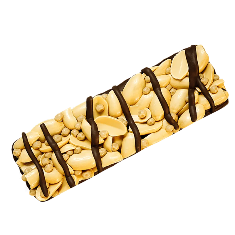 نات بار بادام زمینی نه تنها خوشمزه و لذت بخش بلکه غنی از پروتئین، چربی و مواد مغذی سالم و مفید می باشد. شامل اسیدهای چرب غیراشباع می باشد که بیشتر آن ها از اولئیک و لینولئیک اسید تشکیل شده اند و به کاهش کلسترول بد (LDL) کمک می کنند، حاوی انرژی بالا و اسیدهای آمینه ضروری می باشد که مهمترین آنها آرژینین است که در کنار مقدار زیاد بیوتین و ویتامین E موجود در این نات بار، محرک سیستم ایمنی می باشد.